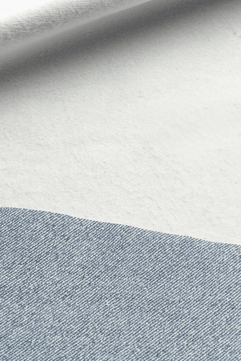 Alt bezi şardonlu olan kumaşımızın, üst kaplaması ise, gerçek jeans görünümü hissi veren, giyimlik suni deri kumaştır.
