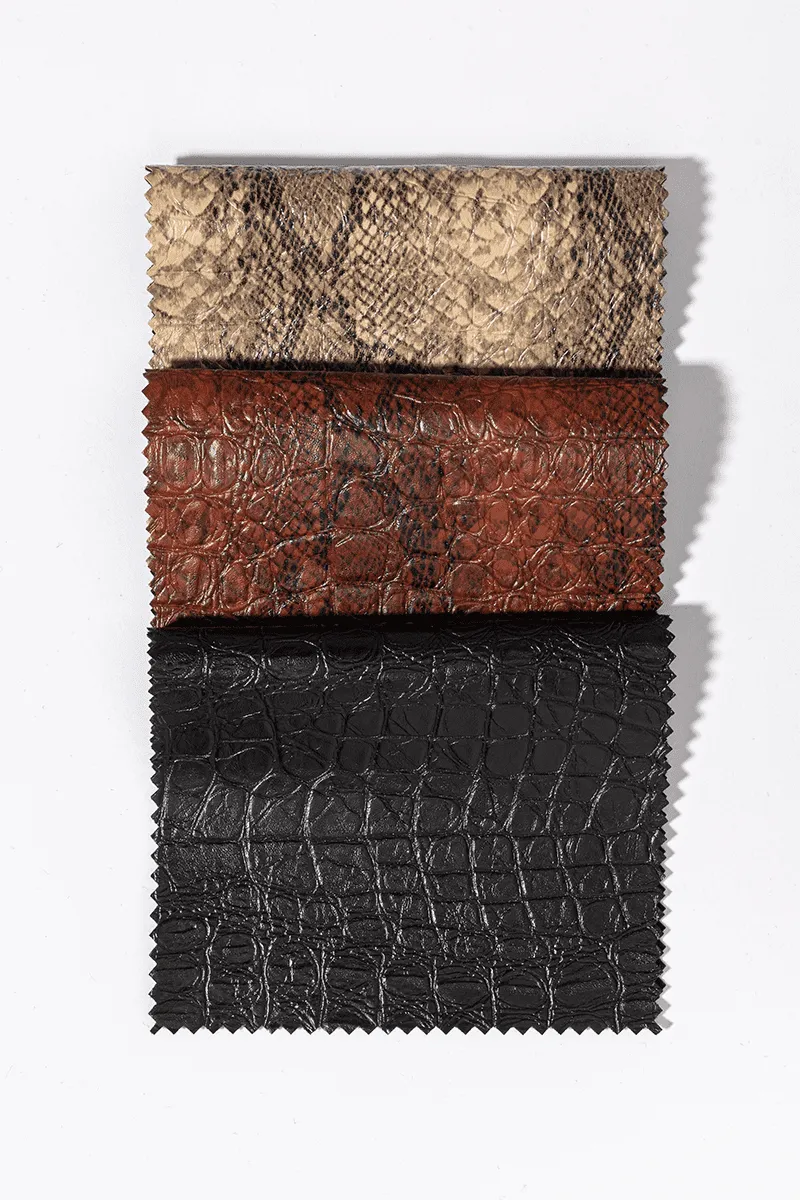 Kumaşımızın, alt bezi şardonlu üst derisi ise desenli kroko olarak gerçek deri görünümü hissi veren desenli suni deri kumaştır.