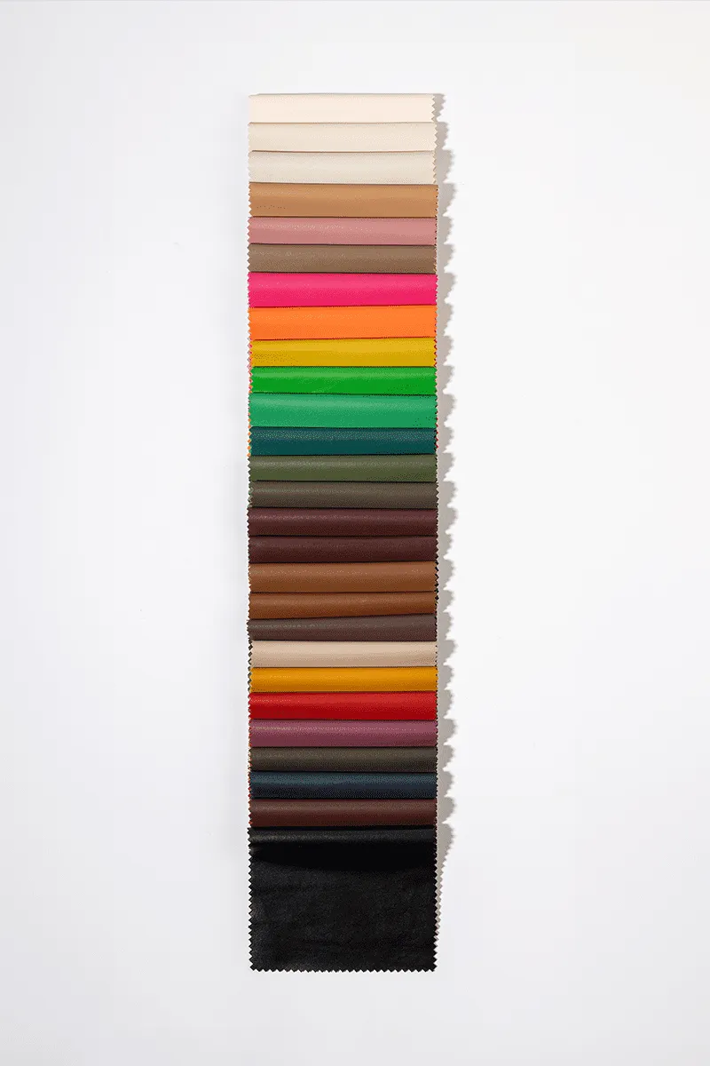 Alt bezi, polyester olan kumaşımızın, üst kaplaması ise, soft ve yumuşak bir dokuya sahip, elastiği yüksek ve kırışmayan giyimlik suni deri kumaştır.