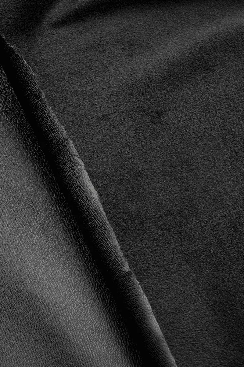 Alt bezi PELUŞ olan kumaşımızın, üst kaplaması ise, gerçek deri görünümü hissi veren, soft ve yumuşak dokuya sahip, likralı giyimlik suni deri kumaştır.